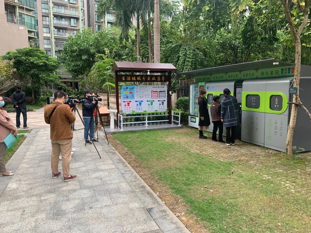 随后到我司位于星湖观澜小区、肇庆市第七小学等垃圾分类项目地,了解端州区垃圾分类示范点工作情况。在调研现场,工作人员向陈副市长一行介绍了我司垃圾分类的运营模式、垃圾分类设备的各项功能以及垃圾分类的便利性等。